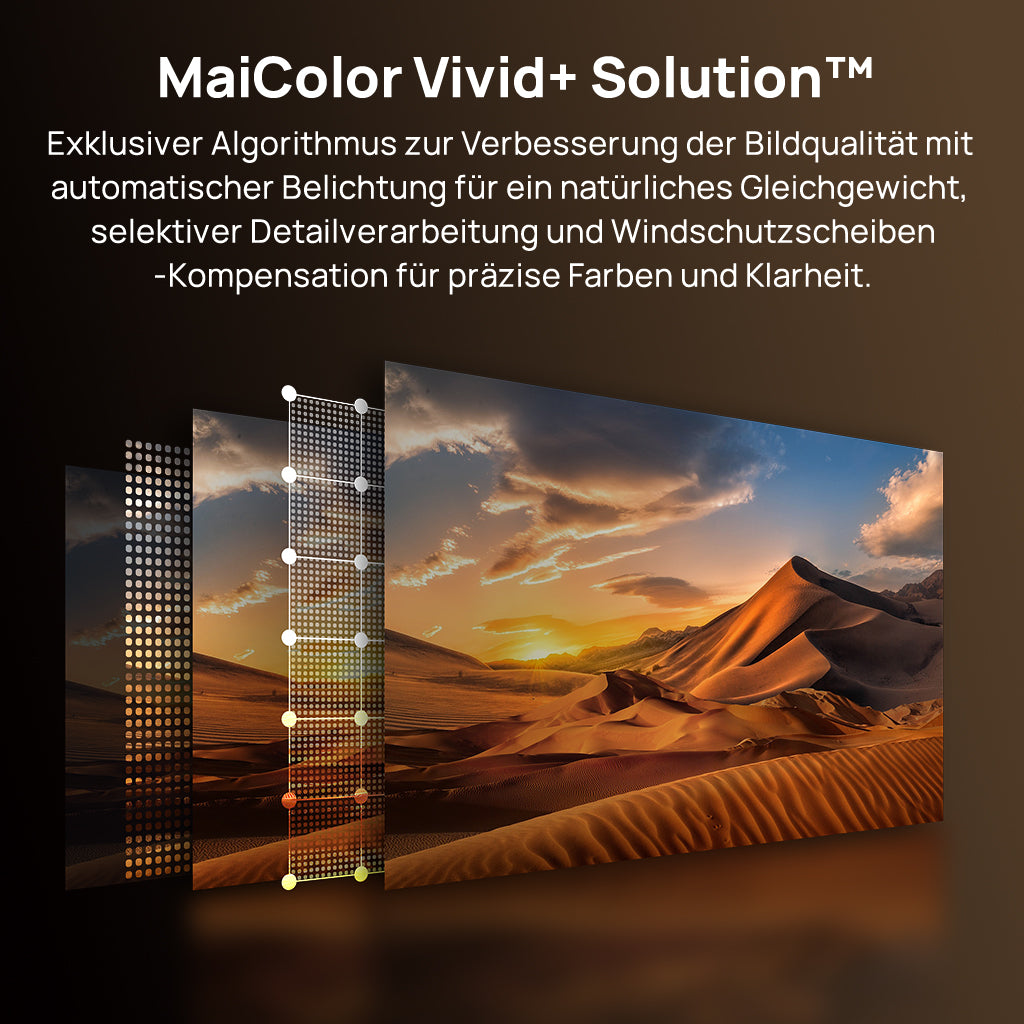 Maicolor Vivid+ Solution™: dank dieses exklusiven algorithmus mit auto-belichtungstechnologie, selektiver bildverarbeitung für wichtige details und windschutzscheibenkompensation werden farben und transparenz präzise wiedergegeben.